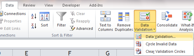 4)    On the Ribbon, Go to Data Tab –> Data Validation Image