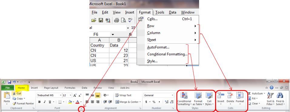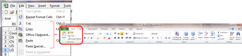 Let’s see where are those “File”, “Edit”, “Insert”, “Format” etc in the new Excel. (note: Excel 2002 and 2010 being used in the following screenshots).
