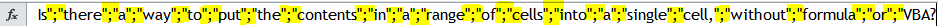 - Using a combination of tricks (=Range, F9, Find and Replace)
