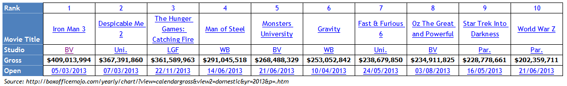However after you read this post, HLOOKUP should be on the top of your mind if you need to figure out a question like: What’s the gross value of box office for “Despicable Me 2”?