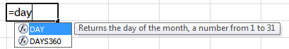 Dated back in Excel 2003, we need to go into the function dialog box to understand the syntax of a function and how it works. Now we will see a list of available functions when we start typing = and a character. For example, when you type =D, you will see all functions start with D. Then once you select the function you need (by using the up and down arrow key), you will see the syntax of it right away on the tip box. That is cool actually.
