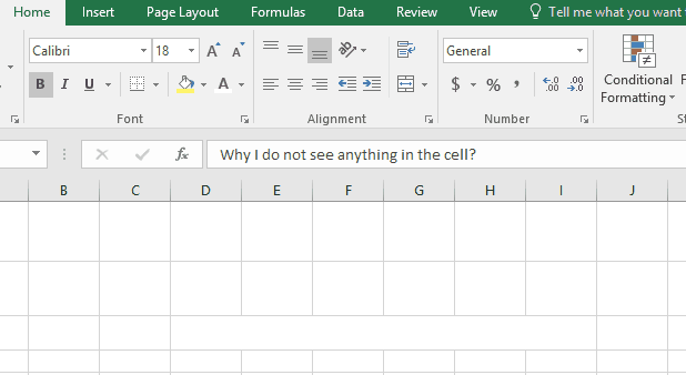 In this case, we see the content in a cell but not in the formula bar… how come?
