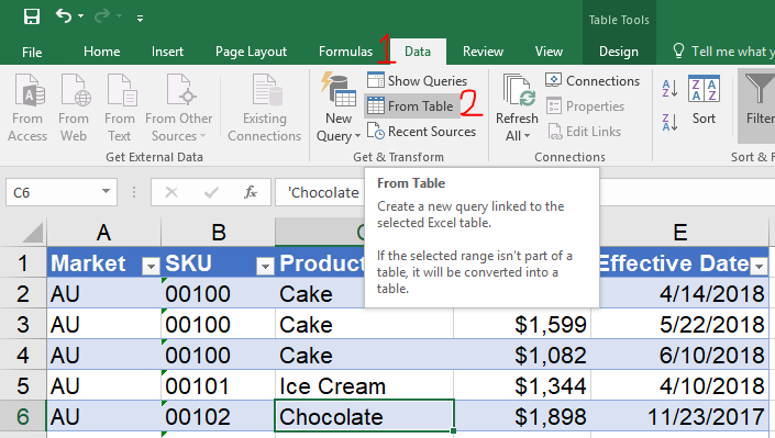 2. From Table (Note: if your data range is not yet converted as Table, Excel will do it for you.)