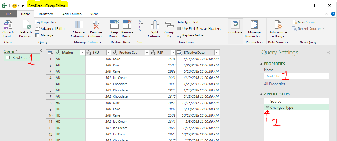As a good practice, let’s give a more meaningful Table Name than “Table1”, e.g. RawData