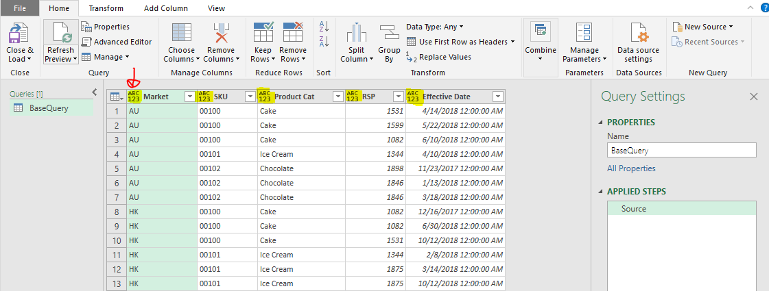 By clicking on the “ABC 123” icon on the left of column header, you will see a dropdown list of different data types for selection, which is quite intuitive: Excel Tip - Price Book with PQ2.21