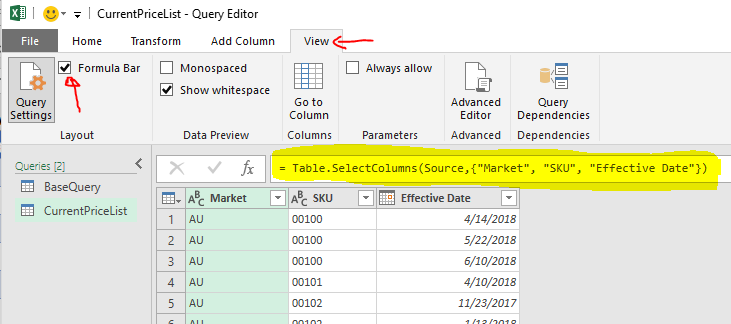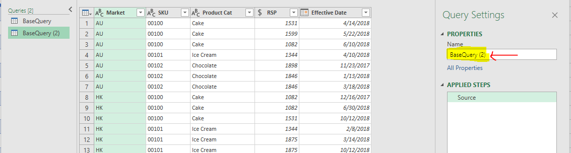 Now we have “BaseQuery (2)” which is identical to the BaseQuery.  Let’s rename it to “CurrentPriceList
