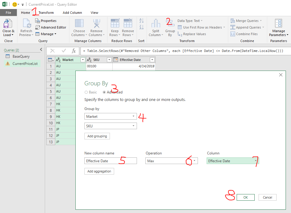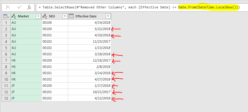Did you notice that in the Sample File – Maintain Price Book Using Power Query (Finished), I have already created “Today” for you, so that you may revise the steps of Filtered Row directly.  🙂