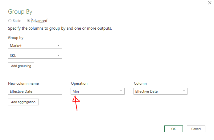 6. Select Max under Operation (because we want to get the latest effective date)