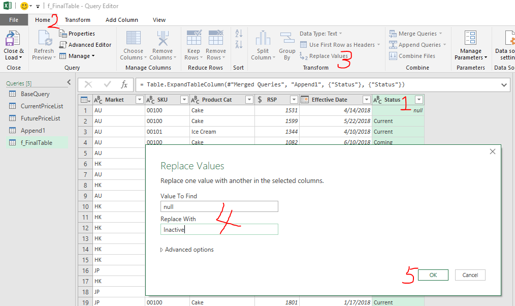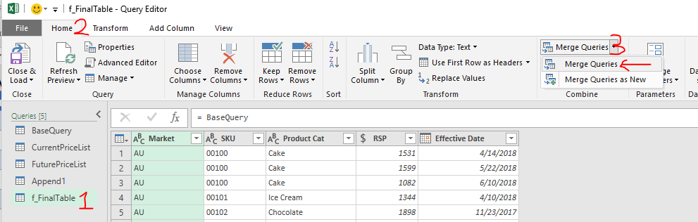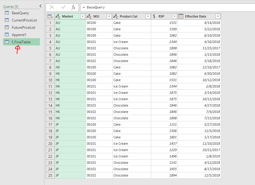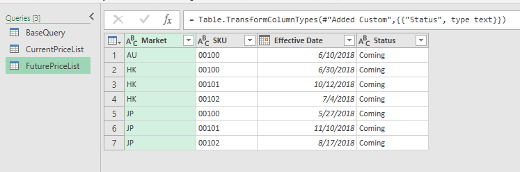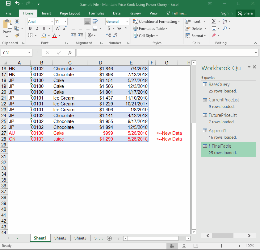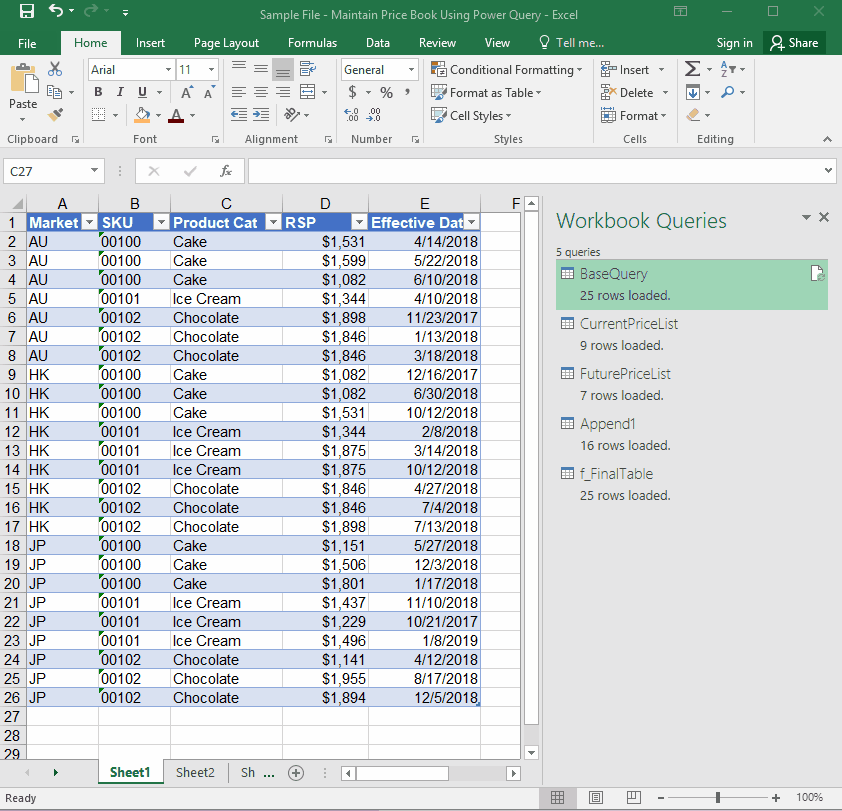 Here’s the sample file with the queries: Sample File – Maintain Price Book Using Power Query (Finished)   (Please Enable Content when prompted)