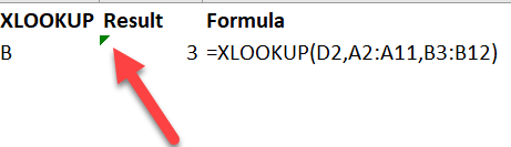 =XLOOKUP(D2,A2:A11,B3:B12)