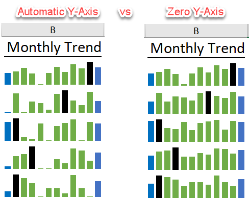 Note: Sparklines are intended to show trend. And thus, the Y-Axis is, by default, set as automatic.