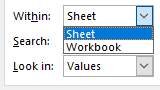 - We can limit the search to the current worksheet, or extend it to the entire workbook.