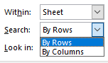 - Search either by rows or by columns. It has impact on the display order in the “Find All” results; or on the sequence of “Find Next”.