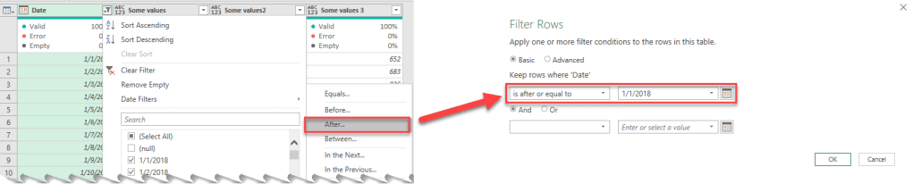 Luckily this is not a big deal because there is a clear pattern for these numbers. These numbers are “Year”. It means they will always be a four-digit numbers (or even two-digit numbers) in my life. It will never fall into any valid date range in my dataset (on which the earliest date is the first day of 2018). After finding this pattern, I modified the query by adding a filter step (Date is after or equal to 1/1/2018) at the end in order to exclude those numbers.