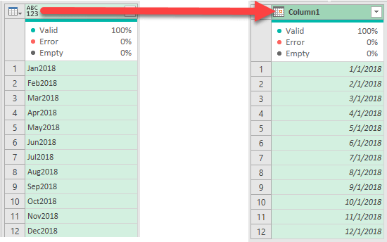 Let’s go to the Power Query editor and see what happened when I tried to convert these texts into date: