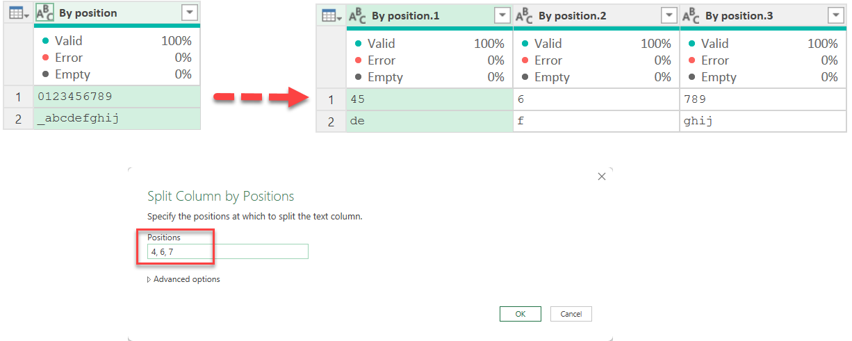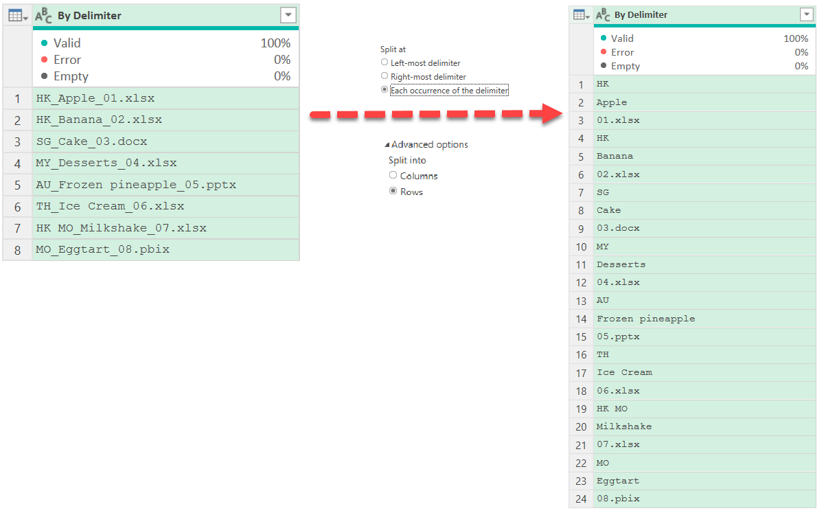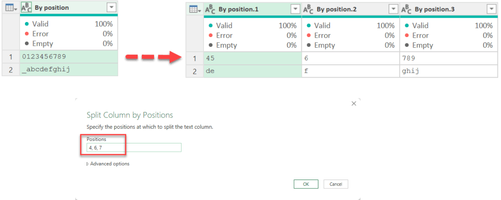 Now you know that there is an option to split into rows under “Advanced options”. The rest of the examples will show you the result using the default split into columns option.