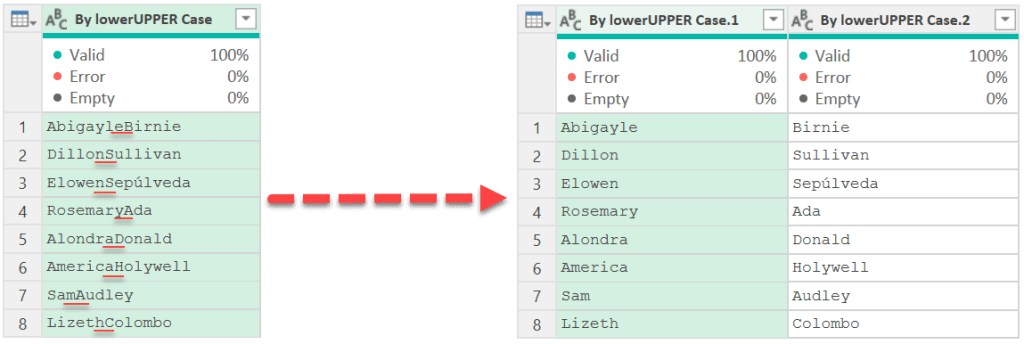 It is not uncommon to see CamelCase where people (probably programmer) express words without spaces. With Power Query, it is super easy to split CamelCase!