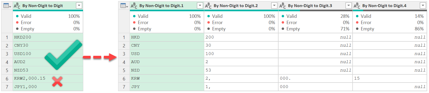 Again, a picture tells thousand words. Let’s see the result of different split options by setting the number of characters as 3.