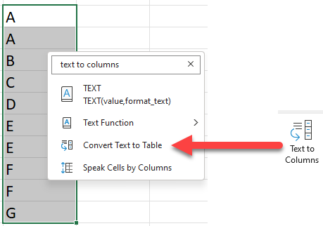 When I specifically type in “Text to Columns”, I could not see what I wanted: