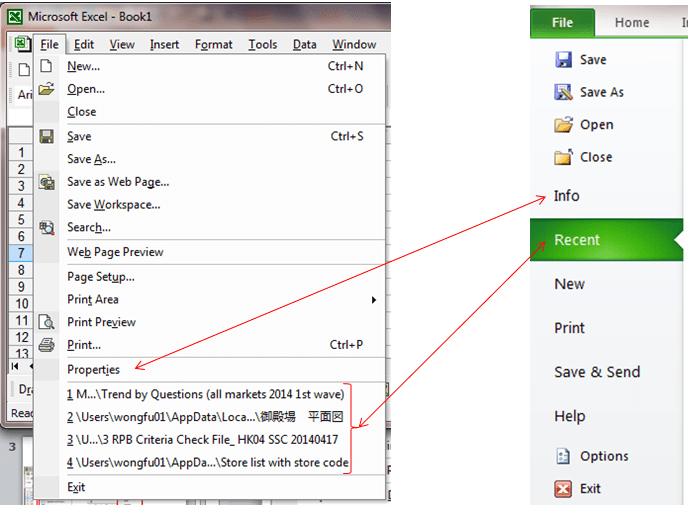 Excel Tips – Old vs New (File_PropertiesRecent)