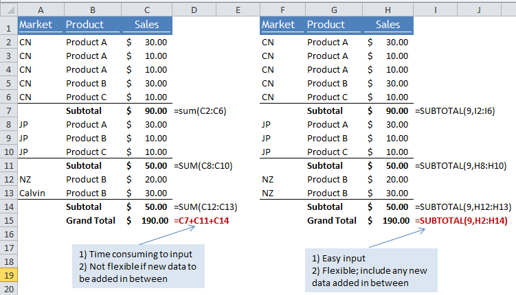 Excel Tips – SUM vs SubTotal 1